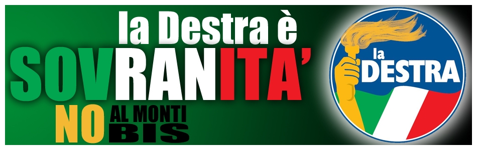 Ultimo appello alla unità ed al rilancio della destra italiana. Serve subito un grande FRONTE NAZIONALE e sociale che difenda veramente l'identità, la sovranità, le libertà ed il benessere del nostro popolo. Il Progetto ITACA di Marcello Veneziani, LA DESTRA di Francesco Storace, la FIAMMA Tricolore di Luca Romagnoli, gli ex AN di Giorgia Meloni e tutte le forze della destra nazional-popolare devono unirsi per il bene comune della nostra amata PATRIA. Non possiamo perdere altro tempo, questa è l'ultima grande occasione di riscossa politica della nostra comunità e di affermazione dei nostri VALORI e delle nostre Idee. Noi, come migliaia di altri militanti in tutta Italia, attendiamo solo uno squillo di tromba, per tornare in campo e combattere questa giusta battaglia contro la plutocrazia ed il mondialismo! - F.to la Comunità Militante di DESTRA PER MILANO -